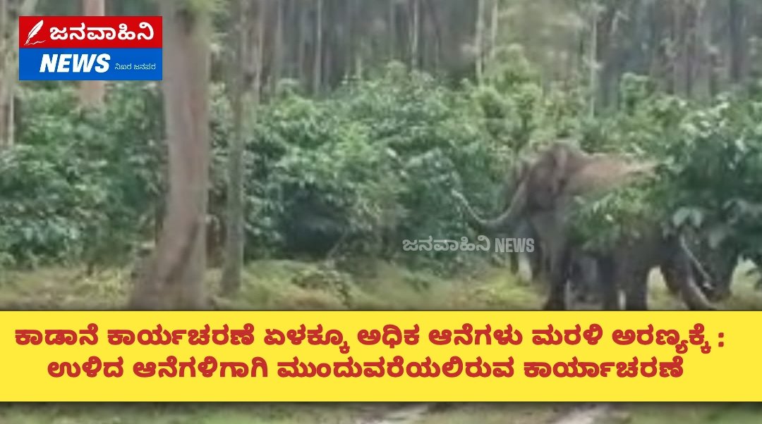 ಕಾಡಾನೆ ಕಾರ್ಯಚರಣೆ ಏಳಕ್ಕೂ ಅಧಿಕ ಆನೆಗಳು ಮರಳಿ ಅರಣ್ಯಕ್ಕೆ : ಉಳಿದ ಆನೆಗಳಿಗಾಗಿ ಮುಂದುವರೆಯಲಿರುವ ಕಾರ್ಯಾಚರಣೆ