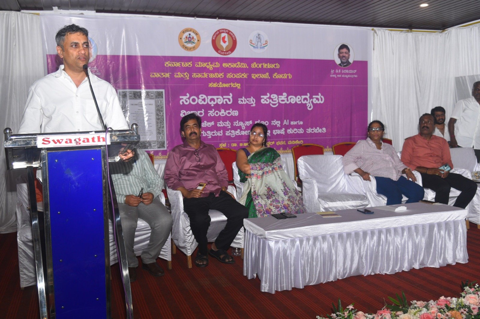 ಕರ್ನಾಟಕ ಮಾಧ್ಯಮ ಅಕಾಡೆಮಿಯಿಂದ ವಾರ್ತಾ ಮತ್ತು ಸಾರ್ವಜನಿಕ ಸಂಪರ್ಕ ಇಲಾಖೆಯ ಸಹಯೋಗದಲ್ಲಿ ಇಲ್ಲಿನ ಡಾ.ಬಿ.ಆರ್.ಅಂಬೇಡ್ಕರ್ ಭವನದಲ್ಲಿ ಶನಿವಾರ ನಡೆದ ‘ಸಂವಿಧಾನ ಮತ್ತು ಪತ್ರಿಕೋದ್ಯಮ’ ಕುರಿತ ವಿಚಾರ ಸಂಕಿರಣದಲ್ಲಿ ಅವರು ಸಮಾರೋಪ ಭಾಷಣ ಮಾಡಿದರು.