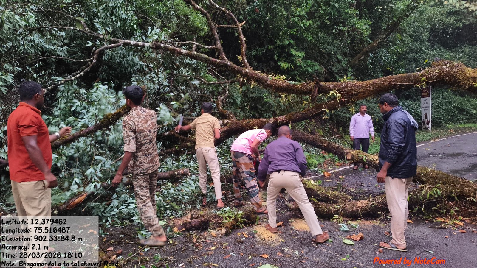 ಅವಾಂತರ : ಗಾಳಿ ಸಹಿತ ಸುರಿದ ಭಾರಿ ಮಳೆಗೆ ಭಾಗಮಂಡಲ – ತಲಕಾವೇರಿ ರಸ್ತೆಗೆ ಅಡ್ಡಲಾಗಿ ಮರವೊಂದು ಬಿದ್ದು ಕೆಲ ಕಾಲ ವಾಹನ ಸಂಚಾರಕ್ಕೆ ಅಡಚಣೆಯಾಗಿತು. ಅರಣ್ಯ ಇಲಾಖೆ ಸಿಬ್ಬಂದಿಗಳು ಮರವನ್ನು ತೆರವುಗೊಳಿಸುವ ಮೂಲಕ ಸುಗಮ ಸಂಚಾರಕ್ಕೆ ಅವಕಾಶ ಕಲ್ಪಿಸಿದರು. ಇದಲ್ಲದೆ ಕೆಲವು ಕಡೆ ಬಿರುಗಾಳಿಗೆ ಮರಗಳು ಧರೆಗುರುಳಿ, ವಿದ್ಯುತ್ ಟ್ರಾನ್ಸ್ಫಾರ್ಮರ್ ಮೇಲೆ ಬಿದ್ದು ಹಾನಿಯಾಗಿರುವ ಕುರಿತು ವರದಿಯಾಗಿದೆ.