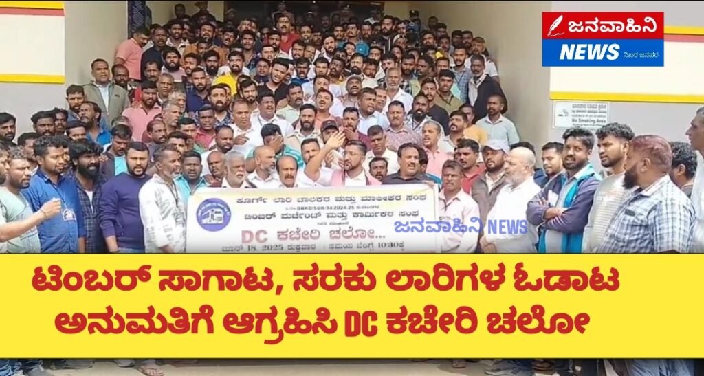 ಕೊಡಗು : ಕೊಡಗಿನಲ್ಲಿ ಟಿಂಬರ್ ಸಾಗಾಟ, ಸರಕು ಲಾರಿಗಳ ಓಡಾಟಕ್ಕೆ ಅನುಮತಿ ನೀಡಲು ಆಗ್ರಹಿಸಿ ಕೂರ್ಗ್ ಲಾರಿ ಚಾಲಕರ ಮತ್ತು ಮಾಲೀಕರ ಸಂಘ ಹಾಗೂ ಟಿಂಬರ್ ಮರ್ಚೆಂಟ್ ಮತ್ತು ಕಾರ್ಮಿಕರ ಸಂಘದ ವತಿಯಿಂದ DC ಕಚೇರಿ ಚಲೋ ಪ್ರತಿಭಟನೆ ನಡೆಸಲಾಯಿತು.