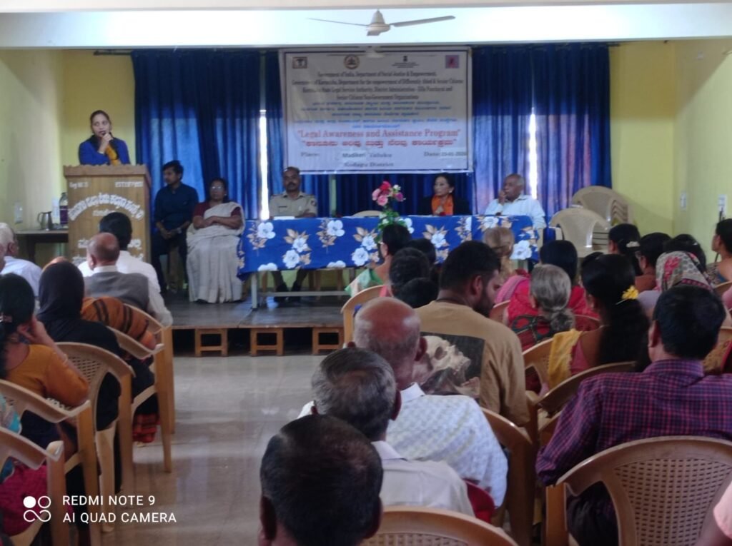 ಜನವಾಹಿನಿ News ಮಡಿಕೇರಿ : ವಿಕಲಚೇತನರ ಹಾಗೂ ಹಿರಿಯ ನಾಗರಿಕರ ಸಬಲೀಕರಣ ಇಲಾಖೆಯು ಹಿರಿಯ ನಾಗರಿಕರಿಗಾಗಿ ಕೇಂದ್ರ ಪ್ರಾಯೋಜಿತ ಅಟಲ್ ವಯೋ ಅಭ್ಯುದಯ ಯೋಜನೆಯಡಿ ಕೇಂದ್ರ ಸರ್ಕಾರದ ಸ್ಟೇಟ್ ಆಕ್ಷನ್ ಪ್ಲಾನ್ ಫಾರ್ ಸೀನಿಯರ್ ಸಿಟಿಜನ್ ಯೋಜನೆಯನ್ನು ಸಮರ್ಪಕವಾಗಿ ಅನುಷ್ಠಾನಗೊಳಿಸುವ ಸಲುವಾಗಿ ಕೊಡಗು ಜಿಲ್ಲಾ ಕಾನೂನು ಸೇವೆಗಳ ಪ್ರಾಧಿಕಾರ ಹಾಗೂ ಪೊಲೀಸ್ ಇಲಾಖೆ ಇವರ ಸಹಯೋಗದಲ್ಲಿ ಹಿರಿಯ ನಾಗರಿಕರ ಕಾಯ್ದೆ 2007, ಹಿರಿಯ ನಾಗರಿಕರ ಆಸ್ತಿ ಸಂರಕ್ಷಣೆ, ಹಿರಿಯ ನಾಗರಿಕರಿಗೆ ಇರುವ ಸೌಲಭ್ಯಗಳ ಕುರಿತಾಗಿ ಸಾರ್ವಜನಿಕರಿಗೆ ಕಾನೂನು ಅರಿವು ಮತ್ತು ನೆರವು ಶಿಬಿರ ಕಾರ್ಯಕ್ರಮವು ನಗರದ ಶಿಶು ಕಲ್ಯಾಣ ಸಂಸ್ಥೆಯಲ್ಲಿ ಶುಕ್ರವಾರ ನಡೆಯಿತು.