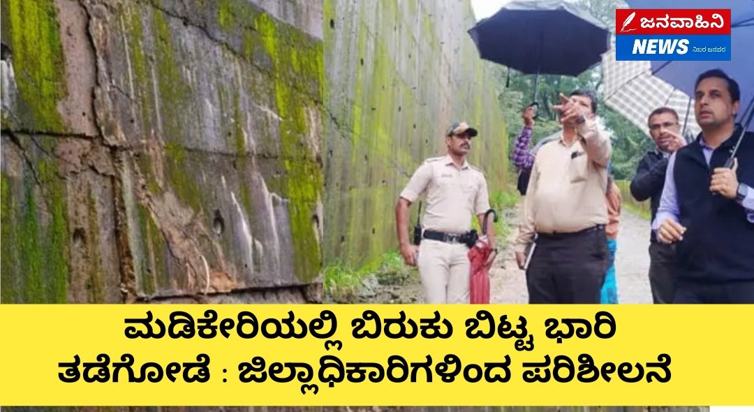 ಮಡಿಕೇರಿಯಲ್ಲಿ ಬಿರುಕು ಬಿಟ್ಟ ಭಾರಿ ತಡೆಗೋಡೆ : ಜಿಲ್ಲಾಧಿಕಾರಿಗಳಿಂದ ಪರಿಶೀಲನೆ