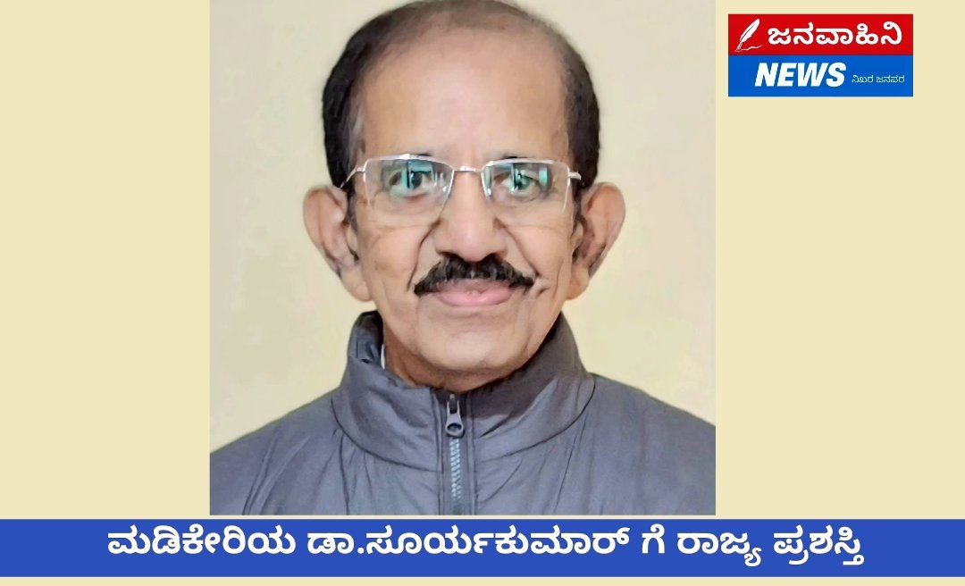 ಮಡಿಕೇರಿಯ ಡಾ.ಸೂರ್ಯಕುಮಾರ್ ಗೆ ರಾಜ್ಯ ಪ್ರಶಸ್ತಿ