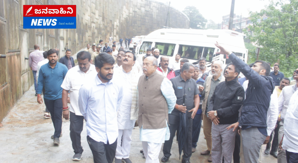 ಮಡಿಕೇರಿ : ವಿಧಾನಸಭೆಯ ಉಪ ಸಭಾಧ್ಯಕ್ಷರು ಹಾಗೂ ಕರ್ನಾಟಕ ವಿಧಾನಸಭೆಯ ಅರ್ಜಿಗಳ ಸಮಿತಿ ಅಧ್ಯಕ್ಷರಾದ ರುದ್ರಪ್ಪ ಮಾನಪ್ಪ ಲಮಾಣಿ ಮತ್ತು ವಿಧಾನಸಭೆಯ ಅರ್ಜಿ ಸಮಿತಿ ತಂಡದ ಸದಸ್ಯರು ನಗರದ ಜಿಲ್ಲಾಡಳಿತ ಭವನ ಬಳಿಯ ತಡೆಗೋಡೆಯನ್ನು ಗುರುವಾರ ವೀಕ್ಷಿಸಿದರು.