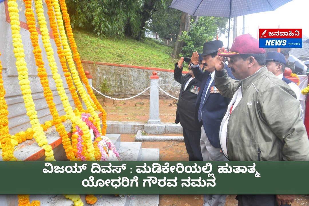 ಕೊಡಗು ಹಿಂದು ಜಾಗರಣ ವೇದಿಕೆ, ಮಡಿಕೇರಿ ಮಾಜಿ ಸೈನಿಕರ ಸಂಘ ಸೇರಿದಂತೆ ವಿವಿಧ ಸಂಘಟನೆಗಳಿಂದ ನಗರದ ಯುದ್ಧ ಸ್ಮಾರಕದಲ್ಲಿ ಕಾರ್ಗಿಲ್ ಯುದ್ಧದಲ್ಲಿ ಹುತಾತ್ಮರಾದ ಯೋಧರಿಗೆ ಪುಷ್ಪ ನಮನ ಸಲ್ಲಿಸಲಾಯಿತು.