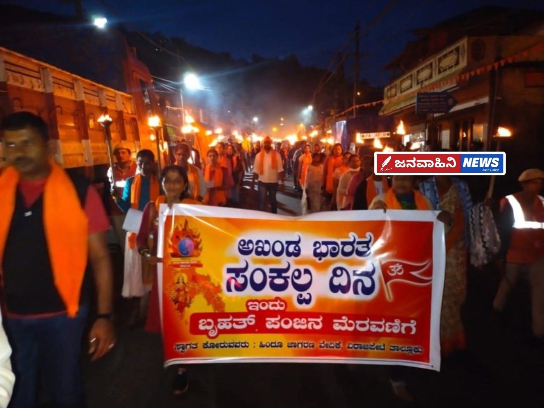 ವಿರಾಜಪೇಟೆಯಲ್ಲಿ ಅಖಂಡ ಭಾರತ ಸಂಕಲ್ಪ ದಿನ ಪ್ರಯುಕ್ತ ಪಂಜಿನ ಮೆರವಣಿಗೆ