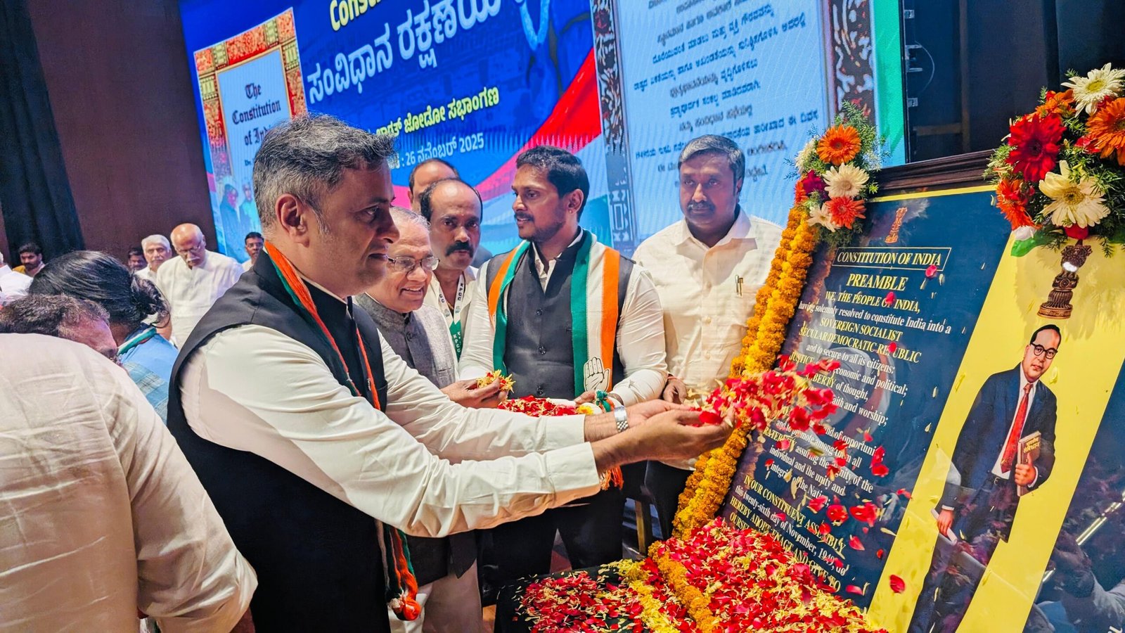 ದೇಶದ ಸಂಪತ್ತು ಕ್ರೋಢೀಕರಣವಾಗಬಾರದು. ಸಮಾನವಾಗಿ ಹಂಚಿಕೆ ಮಾಡುವುದೇ ಸಂವಿಧಾನದ ನಡೆ. ಈ ನಿಟ್ಟಿನಲ್ಲಿ ಚುನಾವಣೆ ಸಂದರ್ಭದಲ್ಲಿ ಮಾನ್ಯ ಮುಖ್ಯಮಂತ್ರಿಗಳಾದ ಸಿದ್ದರಾಮಯ್ಯನವರು, ಉಪಮುಖ್ಯಮಂತ್ರಿಗಳಾದ ಶ್ರೀ ಡಿ.ಕೆ ಶಿವಕುಮಾರ್ ಅವರು ಸಹಿ ಮಾಡಿದ ಐದು ಗ್ಯಾರೆಂಟಿ ಕಾರ್ಡನ್ನು ಮನೆ ಮನೆಗೆ ನೀಡಿದ್ದೇವೆ. ಸಂವಿಧಾನ ಓದಿಕೊಂಡವರು ನಮ್ಮ ಐದು ಗ್ಯಾರಂಟಿಗಳ ಟೀಕೆ ಮಾಡಲು ಸಾಧ್ಯವಿಲ್ಲ ಎಂದರು. ಬುದ್ಧಿಶಕ್ತಿಯಿಂದ ಸಂಪತ್ತನ್ನು ಗಳಿಸುವ ಶಕ್ತಿ ಸಂವಿಧಾನದಲ್ಲಿದೆ. ಆದರೆ ದೇಶದ ಸಂಪತ್ತು ಕ್ರೋಢೀಕರಣ ಮಾಡಲು ಬಿಡಬಾರದು. ದೇಶದ ಸಂಪತ್ತನ್ನು ಬಡವರಿಗೆ, ಶೋಷಿತರಿಗೆ, ಹಿಂದುಳಿದ ವರ್ಗದವರಿಗೆ, ಅಲ್ಪಸಂಖ್ಯಾತರಿಗೆ ಹಂಚುವ ಕೆಲಸವನ್ನು ಗ್ಯಾರಂಟಿ ಮೂಲಕ ಮಾಡಿದ್ದೇವೆ. ಸಂವಿಧಾನದ ಆಶಯವನ್ನು ಎತ್ತಿ ಹಿಡಿದಿದ್ದೇವೆ. ಸಂವಿಧಾನವನ್ನು ಅರಿತು, ಸಂವಿಧಾನದ ಆಶಯವನ್ನು, ಸಂವಿಧಾನದ ತತ್ವಗಳನ್ನು ಜನರಿಗೆ ಮುಟ್ಟುವ ಕೆಲಸವನ್ನು ಮಾಡುವ ಮೂಲಕ ಪಕ್ಷವನ್ನು ಕಟ್ಟುವ ಕೆಲಸವನ್ನು ಮಾಡಬೇಕೆಂದು ತಿಳಿಸಿದರು.