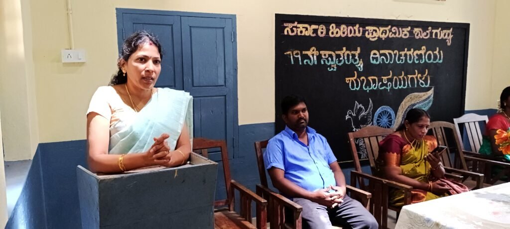 ಮುಖ್ಯ ಶಿಕ್ಷಕಿ ಮಂಜುಳ ರವರು ಧ್ವಜಾರೋಹಣ ನೆರವೇರಿಸಿ ಮಾತನಾಡಿ, ಸ್ವಾತಂತ್ರ್ಯ ದಿನಾಚರಣೆಯಂದು ಮಾತ್ರವಲ್ಲ ಸ್ವಾತಂತ್ಯಕ್ಕಾಗಿ ತಮ್ಮ ಪ್ರಾಣವನ್ನೇ ಬಲಿದಾನ ಮಾಡಿದಂತಹ ಮಹನೀಯರನ್ನು ಯುವ ಪೀಳಿಗೆ ಎಂದಿಗೂ ಸ್ಮರಿಸಬೇಕು ಎಂದರು.