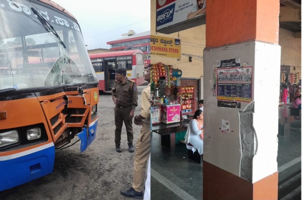 ನಿಯಂತ್ರಣ ತಪ್ಪಿದ ಸರಕಾರಿ ಬಸ್ : ಮಡಿಕೇರಿ ಬಸ್ ನಿಲ್ದಾಣದಲ್ಲಿ ತಪ್ಪಿದ ಭಾರಿ ಅನಾಹುತ