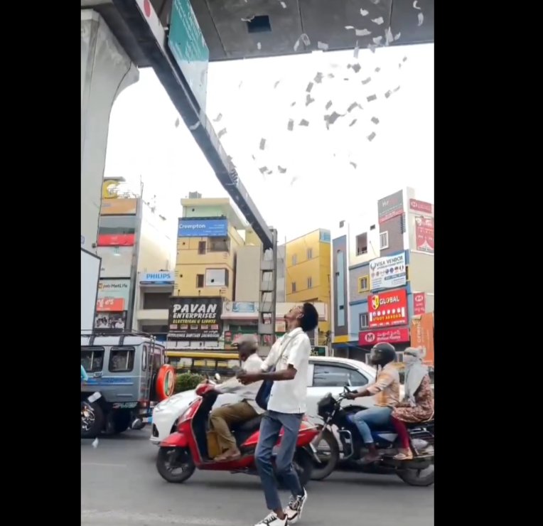 ಕಂತೆ ಕಂತೆ ನೋಟುಗಳನ್ನು ರಸ್ತೆಗೆ ಎಸೆದ ಯುವಕ; ವಿಡಿಯೋ ವೈರಲ್