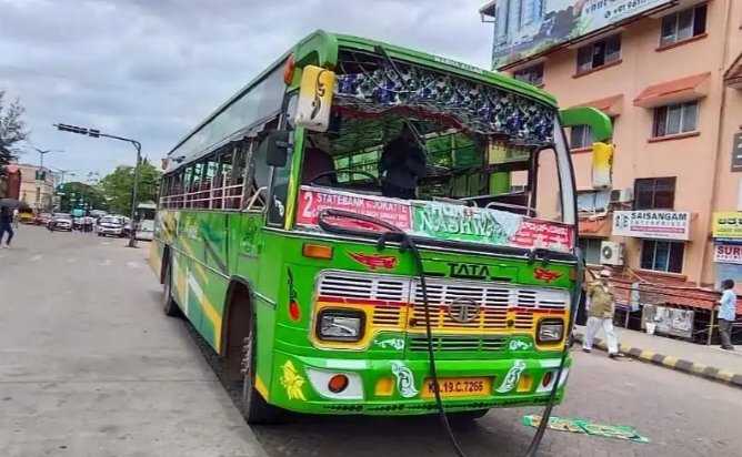 ಪಾದಯಾತ್ರೆ ಬಳಿಕ ರಸ್ತೆಗಿಳಿದ ಕಾರ್ಯಕರ್ತರು ಅಲ್ಲೇ ಸಂಚರಿಸುತ್ತಿದ್ದ ಖಾಸಗಿ ಸಿಟಿ ಬಸ್ ಗೆ ಕಲ್ಲು ಎಸೆದಿದ್ದಾರೆ. ಪರಿಣಾಮ ಬಸ್ ನ ಎದುರಿನ ಗಾಜು ಸಂಪೂರ್ಣ ಪುಡಿಯಾಗಿದೆ.